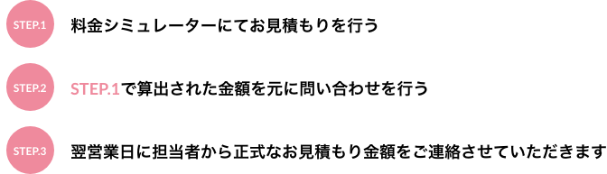 料金シミュレーターで算出された金額を元に、担当者からご連絡させていただきます。