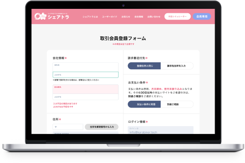 フォームに必要項目を入力して仮会員登録を行ってください。担当者より本登録のご案内を送らせていただきます。