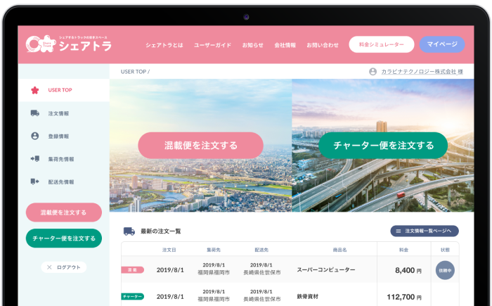 混載便では配送するお荷物の荷姿寸法や面積、チャーター便では借りたいトラックのサイズやオプションなど、必須の入力項目に違いがあります。
